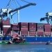 An exhaust emission capture barge connected to the Mississippi at the time of the incident was struck by several containers and damaged, according to the port authority.