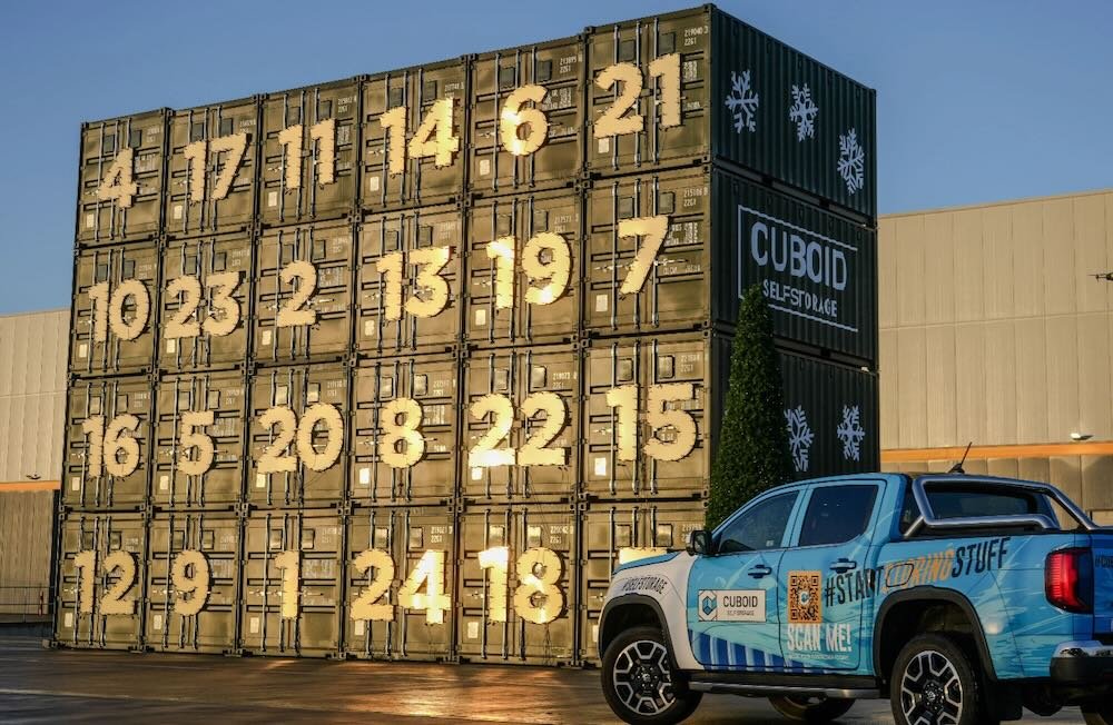 For an industry more used to stacking boxes for efficiency than festivity, the UK’s Cuboid Self Storage has given shipping containers a seasonal makeover by unveiling what it claims is the world’s largest advent calendar made entirely from containers.