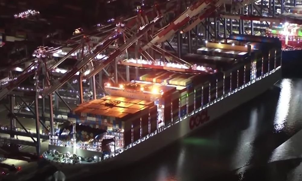 Operated by Orient Overseas Container Line, the 16,828 teu vessel is one of the carrier’s newest units, delivered in January 2025 from Dalian COSCO KHI Ship Engineering Co and forms part of a new generation of ultra-large boxships deployed on Asia–US routes.