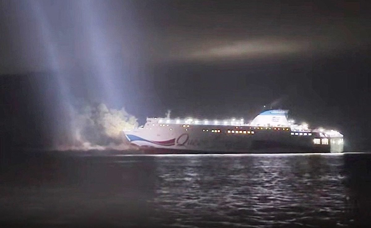 Video footage showed passengers wearing life vests awaiting transfer to rescue boats, which were approaching the ferry. The vessel’s bow appeared stuck on the edge of a small island, but it appeared to be upright and the passengers appeared calm.