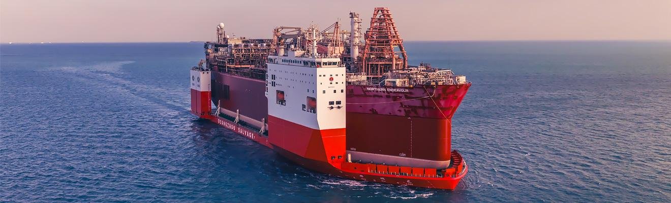 FPSO Northern Endeavour on board COSCO’s Hua Rui Long heavy transport vessel leaving Singapore; Courtesy of Australia’s Department of Industry, Science and Resources