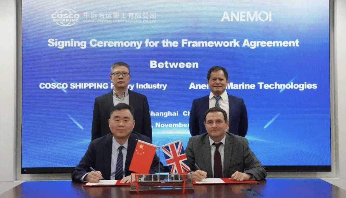 UK-based wind-assisted propulsion provider Anemoi Marine Technologies has renewed its framework agreement with Chinese COSCO Shipping Heavy Industry (CHI) for the provision of comprehensive wind propulsion installation services across CHI subsidiary shipyards.