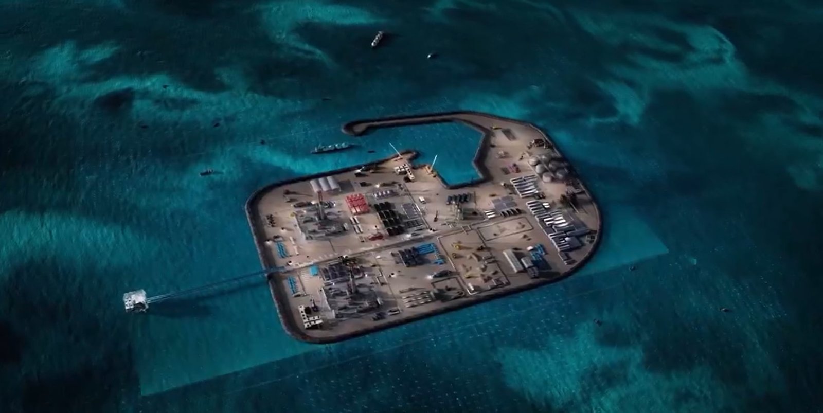 This seabed placement at the gas field signifies the laying of foundations for the project’s offshore facilities. ADNOC put the UAE’s National Marine Dredging Company (NMDC) in charge of the dredging, land reclamation, and marine construction assignment on this gas project, with work entailing the construction of ten artificial islands and two causeways, along with the expansion of an existing island, Al Ghaf.