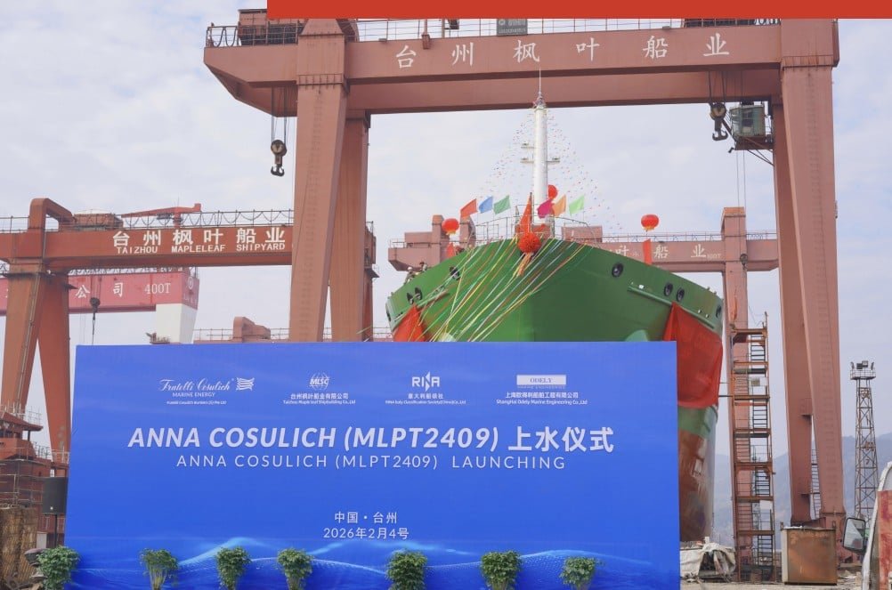 The vessel named Anna Cosulich was launched on February 4 at the Taizhou Maple Leaf Shipyard in China, with Giovanna Cibin, Managing Director of Express Global Hong Kong, officially releasing the vessel into the water as its godmother.