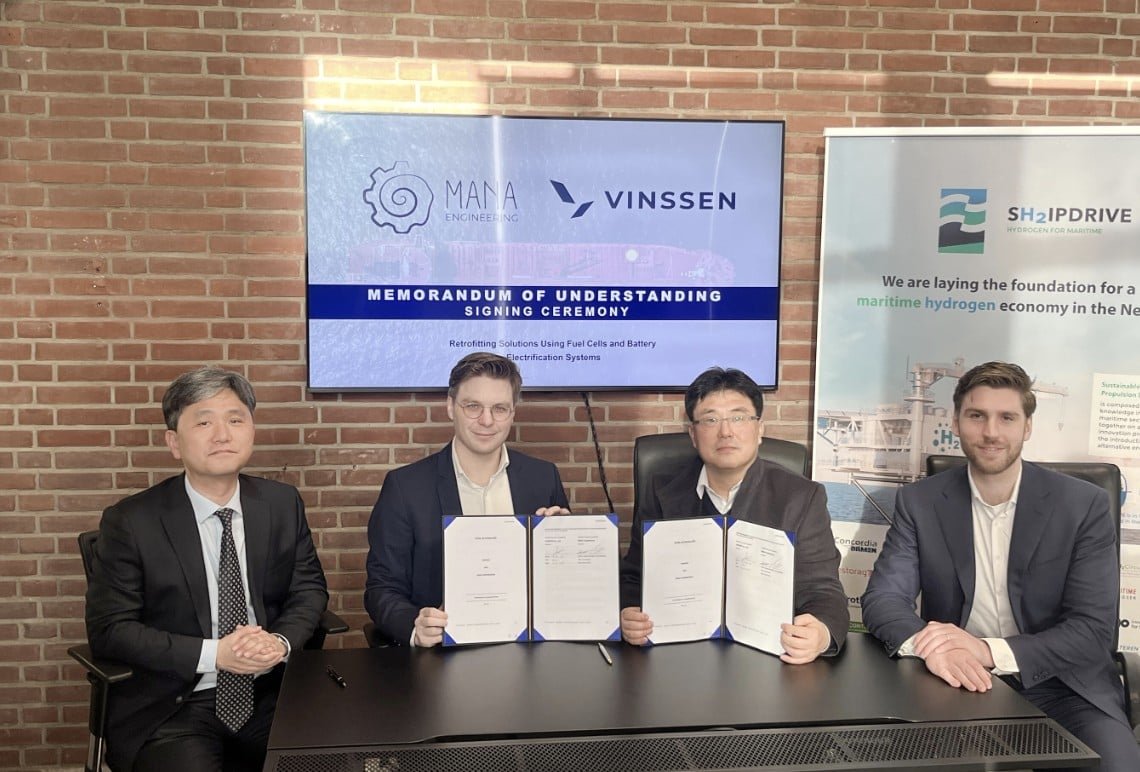South Korea’s maritime decarbonization technology specialist Vinssen and Dutch engineering firm MANA Engineering have signed a memorandum of understanding (MOU) to jointly develop a hydrogen fuel cell-based retrofit solution for an 800 TEU feeder container vessel operating in Northern Europe and the Baltic Sea.