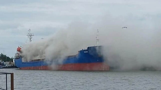 Humberside Fire and Rescue reports it dispatched four engines and a ladder platform to the scene, and they are working the smoky fire aboard a small dry bulk cargo ship named Altay. Ambulances and the Hull Coastguard Rescue Team were also on hand.