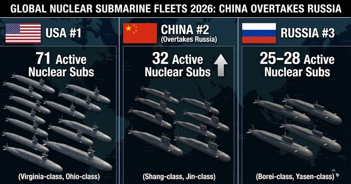 This brings China’s active nuclear submarine fleet to 32 boats in 2026, excluding the next-gen hulls still being constructed.