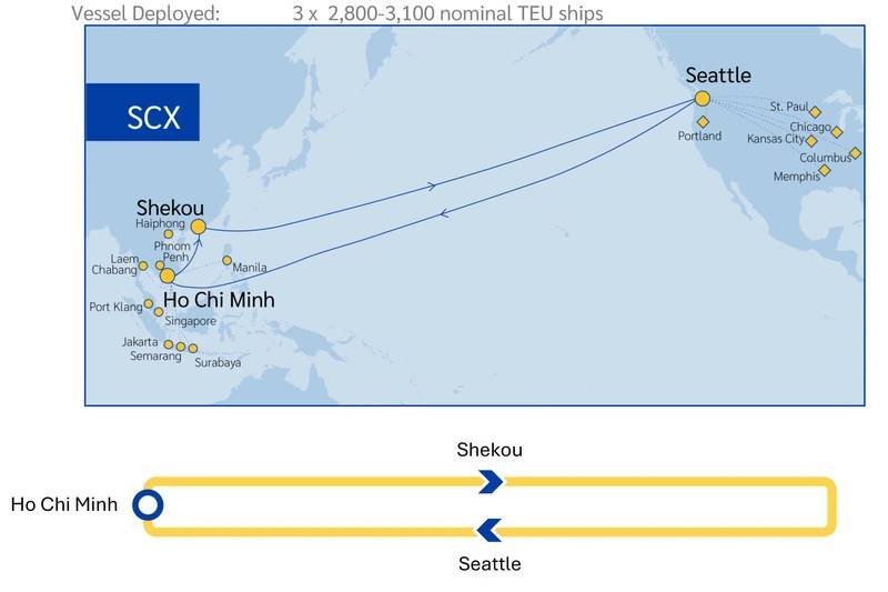 The Sun Chief Express (SCX) will directly connect Seattle, WA with Ho Chi Minh, and Shekou, while also providing wider coverage of Southeast Asia via these ports. ESL will leverage its intermodal solutions within the US market, to provide inland connectivity via Seattle to locations across the US including, but not limited to Portland, OR, St. Paul, MN, Chicago, IL, Kansas City, MO, Columbus, OH and Memphis, TN.
