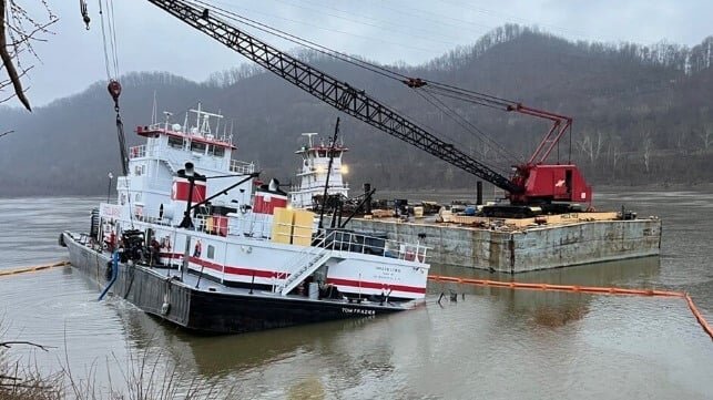 A second towboat took over the barge tow and moved it safely to a fleeting area. Salvors went to work on refloating the Frazier and removed it on February 13, assisted by rising waters.