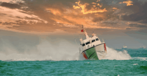 A high-speed boat carrying 34 migrants and one trafficker hit a coast guard vessel, throwing everyone onboard into the sea.