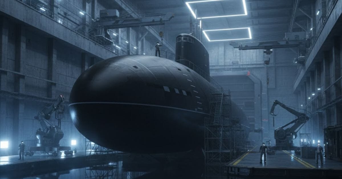 Earlier photos of the submarine only showed parts of the hull. The latest images show the full hull, which appears largely complete. Experts say this usually means most internal systems, including possibly the nuclear reactor, are already installed.