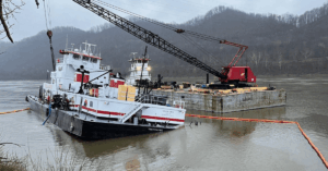 The towing vessel Tom Frazier was pushing 15 empty hopper barges near Portsmouth, Ohio, on Feb. 10, 2024, when the vessel grounded, damaging the vessel’s hull plating, framing and bulkheads and flooding several spaces.
