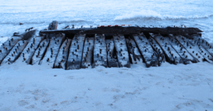 The wreck was first discovered in February 2024 by the local community after stormy weather and shifting sands exposed its remains.