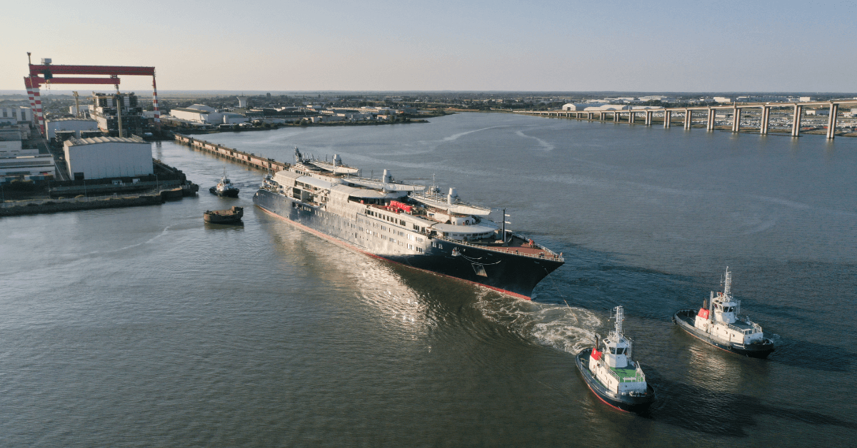 Orient Express Corinthian, the world’s largest sailing yacht, has been floated out for the first time at the Chantiers de l’Atlantique shipyard in Saint-Nazaire, France.